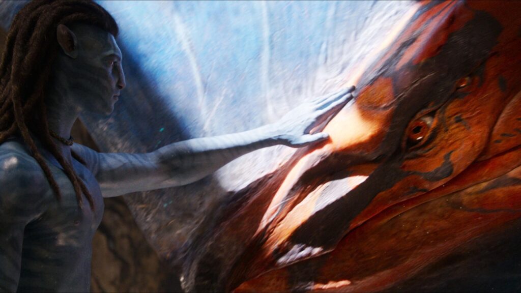 This process hasn’t gotten any better since The Way of Water three years ago. High Frame Rate doesn’t immerse viewers into Pandora’s world. Instead, the 48 fps moments trap the Sully clan in motion smoothing hell. The 24 fps segments following these sped-up images, meanwhile, take on an immediately discernible janky appearance. A gigantic blockbuster on a massive movie theater screen shouldn’t look like it’s buffering. Cameron’s deployment of these varying frame rats indicates no precision or thoughtfulness. It’s just deployed so randomly that it kept forcing me out of the movie. All that money spent on visual effects work ruined by hideous High Frame Rate projection. What a staggering folly.